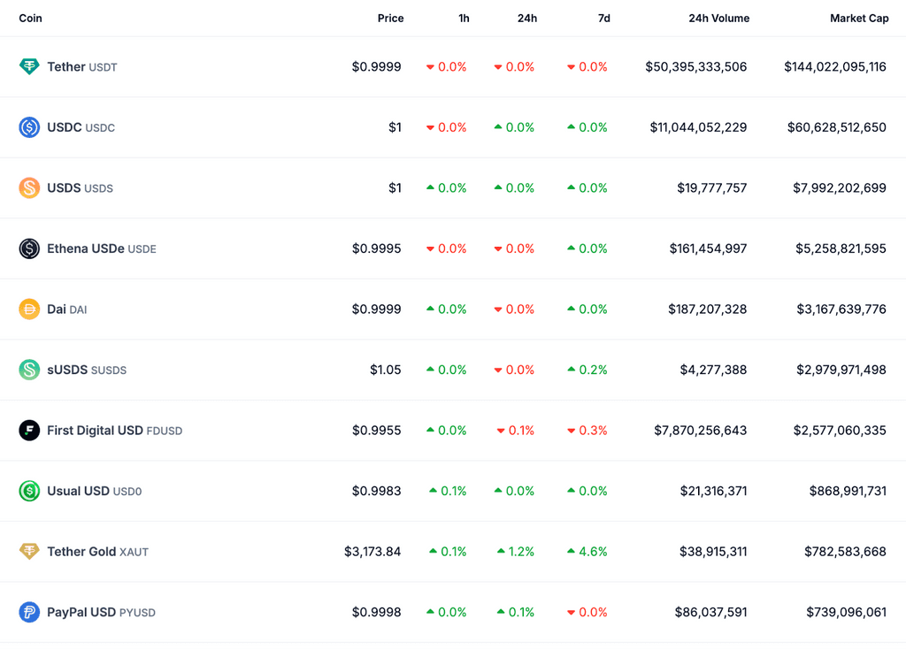 المدعومة بالأصول: يحتفظ المُصدر بمبلغ معادل من العملة القانونية أو الأصول (مثل الدولار الأمريكي، السندات الحكومية) كاحتياطي، ويمكن للمستخدمين استبدالها في أي وقت. على سبيل المثال، USDT (Tether) وUSDC (Circle) هما من ممثلي هذه الفئة.