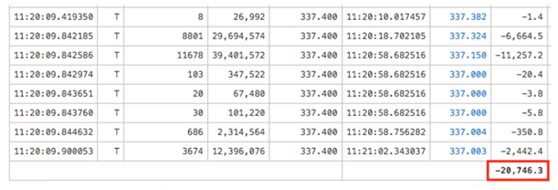 يمكن تجميع الفروقات بين أسعار التنفيذ و VWAP للمنافسين لتقرير النتائج التراكمية لكل طلب وطلب كبير.
