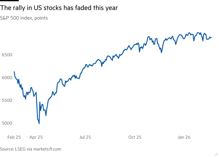 Los llamados Magníficos 7 — las gigantes tecnológicas que dominan el índice ponderado por capitalización de mercado — han caído un 5.6 por ciento desde principios de enero, mientras que siete de los 11 sectores del S&P 500 han subido.