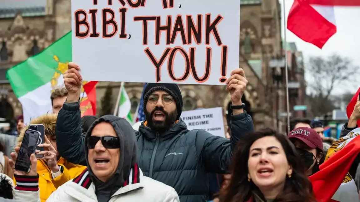 Algunas personas estadounidenses de origen iraní se reúnen en la plaza Copley, pidiendo que caiga la República Islámica de Irán