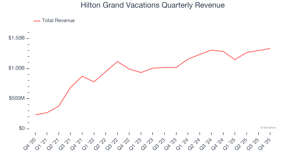 Timeshare vacation company Hilton Grand Vacations (NYSE:HGV) quedó por debajo de las expectativas de ingresos del mercado en el 306.4M CY2025, ya que las ventas aumentaron un 3.8% interanual hasta $1.33 mil millones. Su beneficio no-GAAP de $0.88 por acción estuvo un 24% por debajo de las estimaciones de consenso de los analistas.