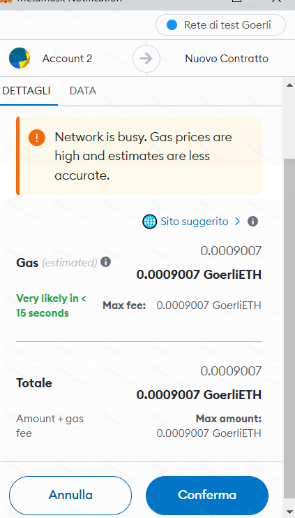Metamask akan meminta Anda untuk mengkonfirmasi transaksi. Periksa harga bahan bakar dan batas bahan bakar untuk memastikan semuanya beres, lalu konfirmasikan transaksi.