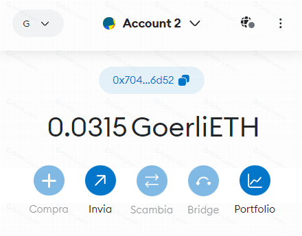 Untuk menerapkan kontrak di Goerli Testnet, Anda memerlukan Goerli ETH (GoerliETH). Meskipun tidak memiliki nilai nyata, ini penting untuk membayar biaya bahan bakar di testnet.