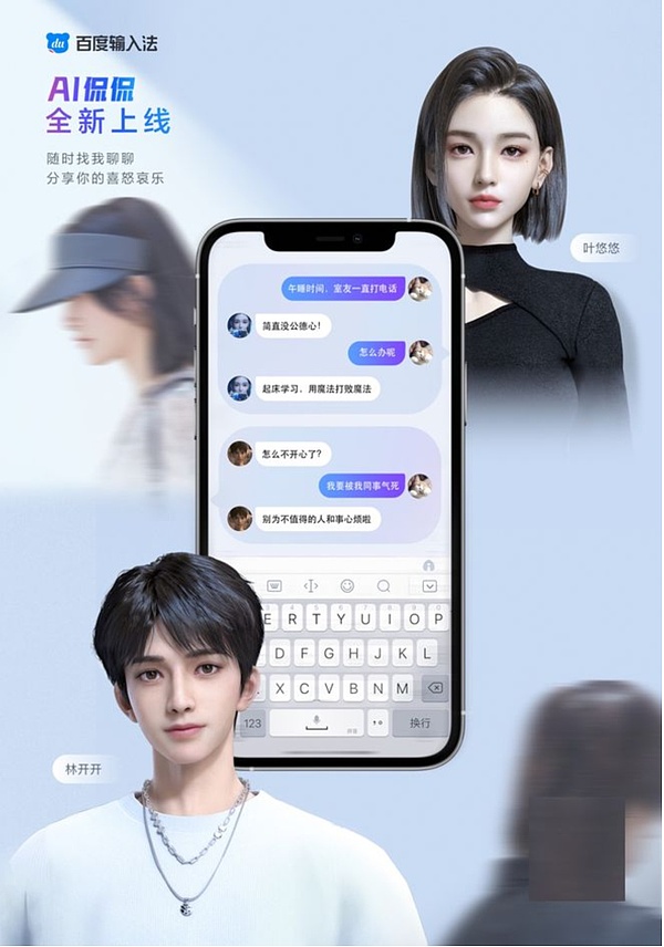 文心PLATO対話大モデルに基づいて、百度入力法は林開開と葉悠悠のために、没入型の伴走、長期記憶、深い話題などのカスタマイズ機能をアップグレードしました。つまり、チャットのやり取りが増えるにつれて、彼らはあなたをより理解し、現実の世界で毎日あなたのそばにいて、いつでもどこでもあなたと何でも話せる親密な友人のようになっていくのです。