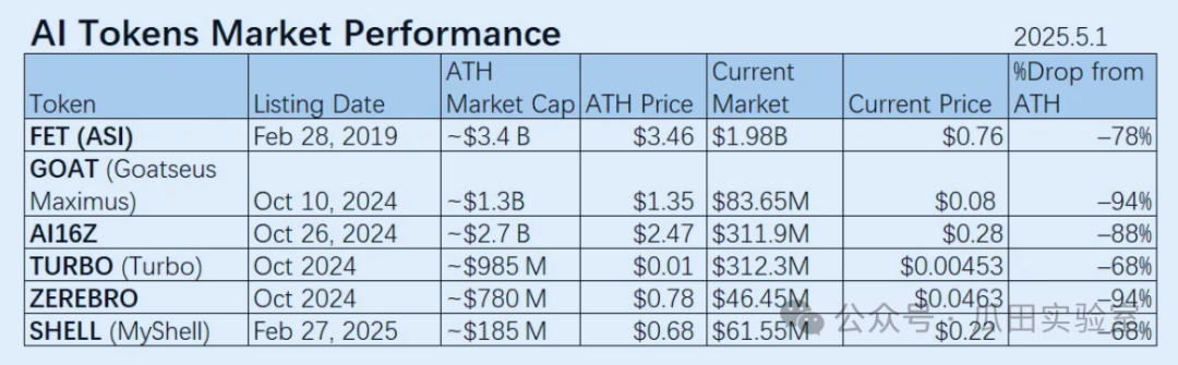 さらに、資金調達モデルと参加モデルの違いも、両者の開発パスに影響を与えます。 Web2 AIは通常、研究投資と製品の収益化によって推進され、サイクルは比較的平坦です。 一方、Web3 AIは、暗号市場の投機的な性質を兼ね備えており、市場センチメントの浮き沈みを伴う「ブーム」サイクルに現れることがよくあります:コンセプトが熱いときは、資金がトークンの価格と評価を押し上げるために殺到し、それが冷え込むと、プロジェクトの熱と資金は急速に減少します。 このサイクルにより、Web3 AIの道はより不安定で物語主導型になります。 例えば、AIのコンセプトが大きな進歩を欠いていると、市場のセンチメントによってトークンの価格が急騰することもあります。 それどころか、市場が低迷しているときは、技術的な進歩があっても、注目を集めることは困難です。