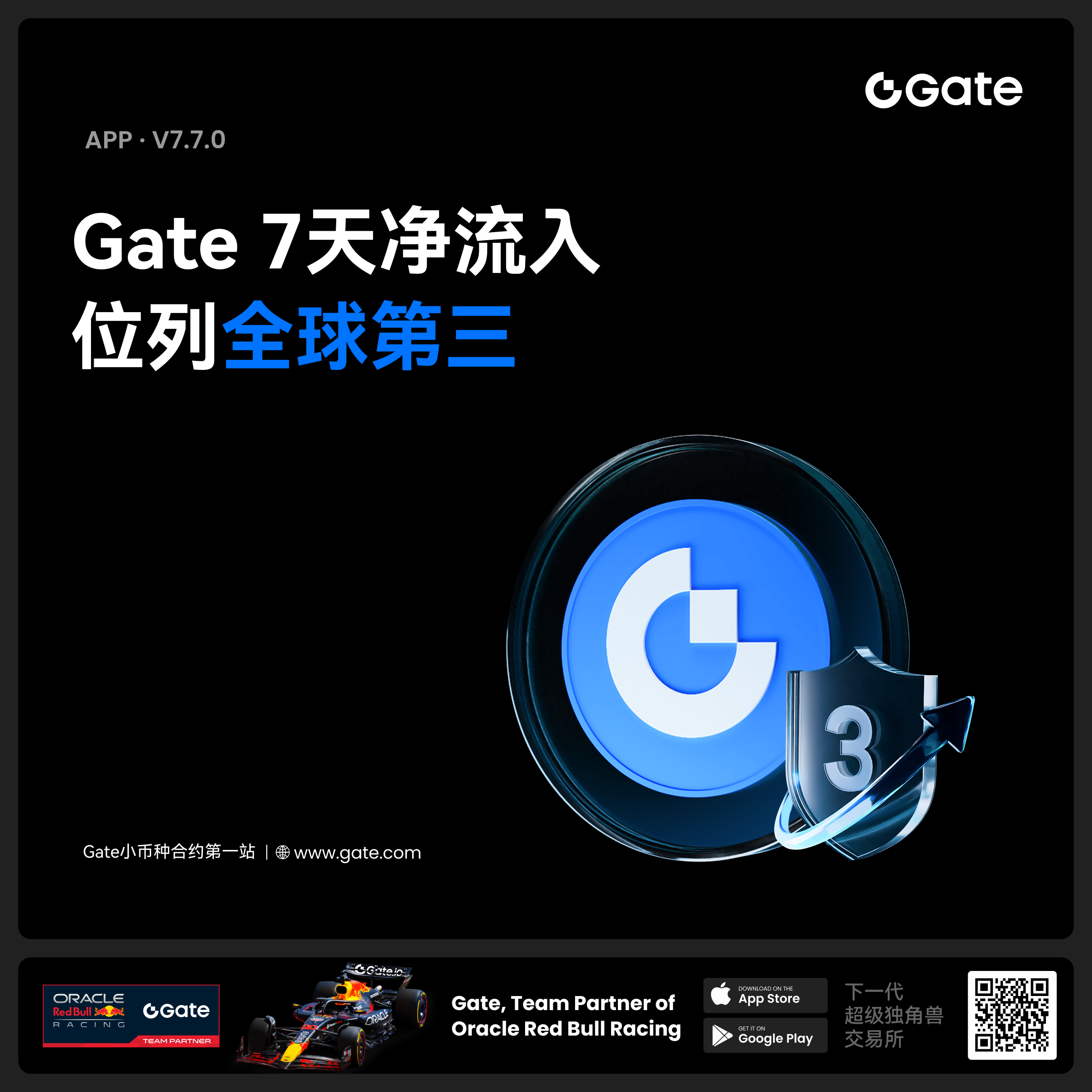 Gate News botのメッセージによると、Gate FuturesはXの投稿で情報を更新し、Gate取引所の7日間の純流入は世界で3位にランクインしています。