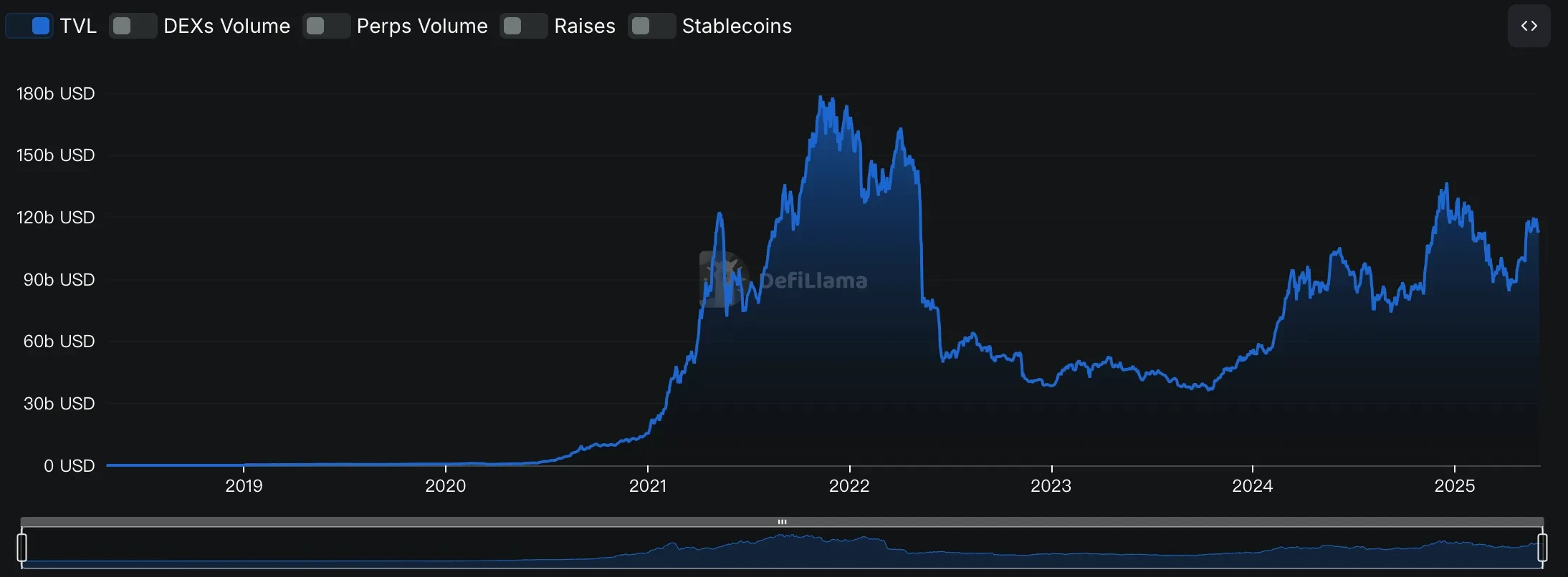 2020年から2021年にかけて、分散型金融は驚異的な速度で急成長しました。その時、全体市場のロックされた資産(TVL)は十数億ドルから急上昇し、最高時には1780億ドルに達しました。UniswapやAaveといった奇妙な名前のプロトコルは、一時的に世界の暗号界の人気プロジェクトとなりました。
