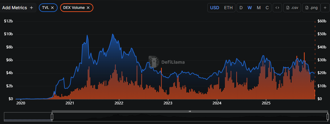 いわゆるDeFiブルーチップさえも構造的な天井に直面しています。$UNI は引き続きDEXの取引高を支配していますが、使用量をトークンの直接的な価値獲得に変換することには苦戦しています。
