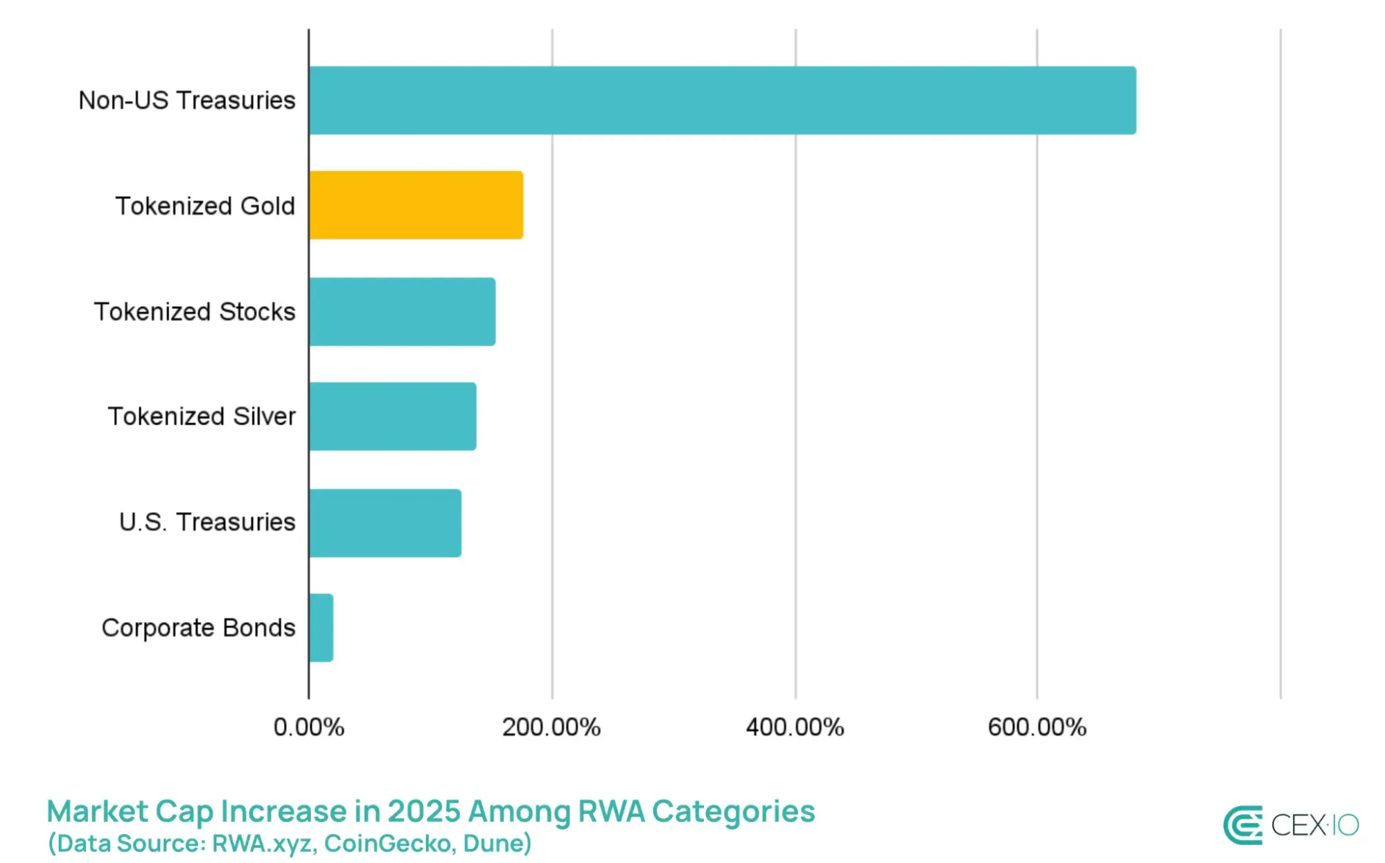 2025年、トークン化された金はニッチなRWAカテゴリーから大規模な金投資手段へと移行し、成長と取引活動の両面で確立された金ETFに匹敵、または凌駕しました。その機能は、機関投資家向けのエクスポージャーとリテールのアクセス性を兼ね備え、RWAエコシステム内で最もスケーラブルなセグメントの一つとなっています。