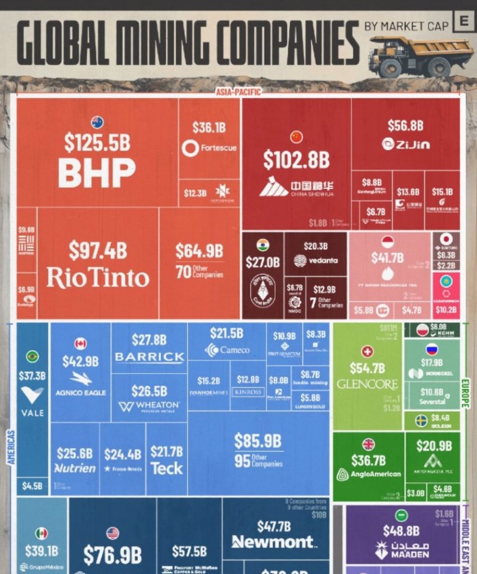 ソース:CritpoTendenciaオリジナルタイトル:グローバル鉱業権力地図:市場がすでに理解していることとほとんど誰も見ていないことオリジナルリンク: 市場は四半期の結果や金融政策の声明だけで動くわけではありません。より基本的で静かで、はるかに置き換えが難しいものによって動いています:**資源のコントロール**。そして、時価総額別の主要鉱業会社のグローバルマップを見ると、それは sectorial な好奇心ではなく、実際の経済権力の明確なレントゲン写真です。これは企業に関するグラフではありません。**グローバルな金融・生産システムの基盤を誰がコントロールしているか**に関するグラフです。何年も、注目はテクノロジー、デジタルプラットフォーム、未来の期待に基づく成長モデルに向けられてきました。しかし、メディアの焦点が別の方向を向いている間に、資本は静かにポジションを再編してきました。今日、時価総額で16兆ドルを超える資産は、物語を革新することではなく、**重要な資源を抽出、加工、確保する**役割を持つ企業に集中しています。## 権力は議論される場所ではなく、資源が抽出される場所にあるオーストラリア、中国、アメリカは、グローバル鉱業マップのコアを集中させています。偶然ではありません。これらの地域は、戦略的鉱物に直接アクセスできる場所です:鉄、銅、リチウム、ウラン、石炭、金、希少土類元素。これらの要素なしには、エネルギー転換、技術インフラ、防衛、産業の安定は成り立ちません。このマップは明確なシグナルを残しています:**経済的権力は再び物理的なものに根ざしている**。インフレが一時的でなくなり、地政学的分裂が構造的な世界では、基本的な資材のコントロールが指数関数的な成長の約束よりも重視されるのです。市場はテクノロジーを無視していません。ただ、理解しているのです。原材料なしに、スケールアップできる技術は存在しないと。### 実物資産と支えを求めるシステム最も深い読みはランキングではなく、文脈にあります。この再編は、中央銀行、ソブリンファンド、機関投資家が**リターンよりも保護を優先**する段階と一致しています。資源抽出やコモディティに関連する資産の価値が高まる一方、国債は避難先としての魅力を失っています。伝統的な金融商品への信頼が脆くなると、資本は錨を求めます。そして、その錨はソフトウェアで印刷されたり複製されたりしません。掘り起こされるのです。### 市場がすでに送ったメッセージこのグラフはトレンドを予測するものではなく、すでに決定された決定を反映しています。市場は、政治的コンセンサスや金融の安定、拡張的流動性サイクルに依存しないものに向かっています。希少で、具体的で、戦略的に不可欠なものに焦点を当てているのです。これは戦術的な賭けではありません。これから来る世界の構造的な読み取りです。システムが支えを必要とするとき、資本は議論しません。**コントロールを買うのです**。— Mr. Market