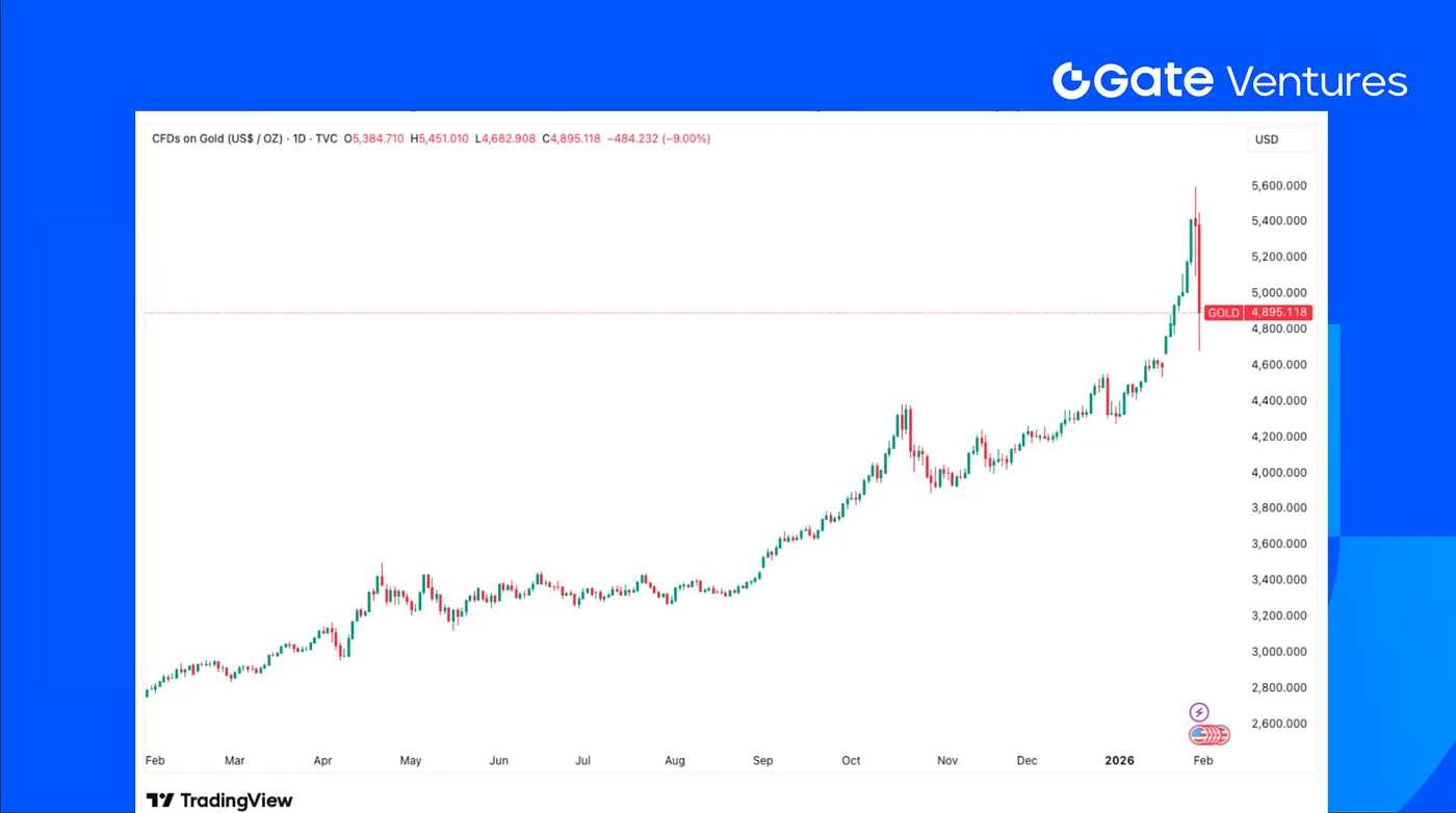 先週、金価格は一時5600ドル/オンスの歴史高値に迫ったが、Kevin WarshのFRB新議長就任とタカ派的政策の背景により、金価格は金曜日に大きく下落した。(5)