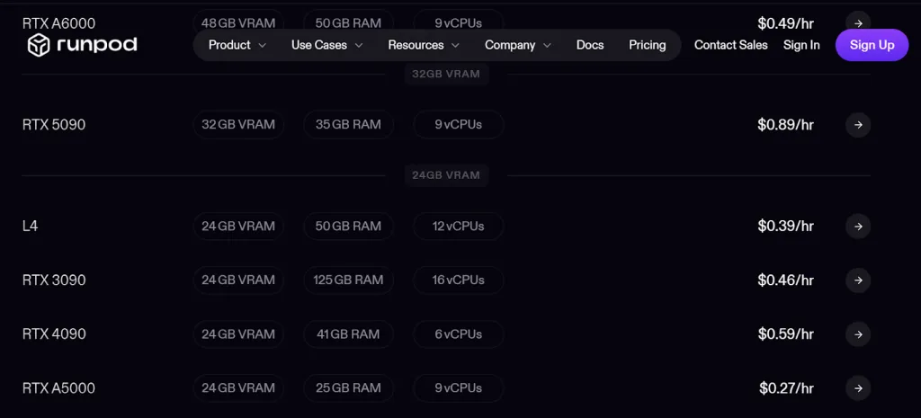 RunPodは、$0.89/時間で不足気味のフラッグシップGPURTX 5090を利用できるサービスを提供している。