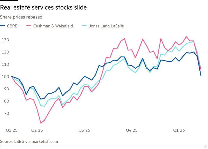 In addition, investors are fearful that amid the advent of AI, companies will no longer require a human broker to help them secure office leases, for example, and will instead be able to use automated advice.