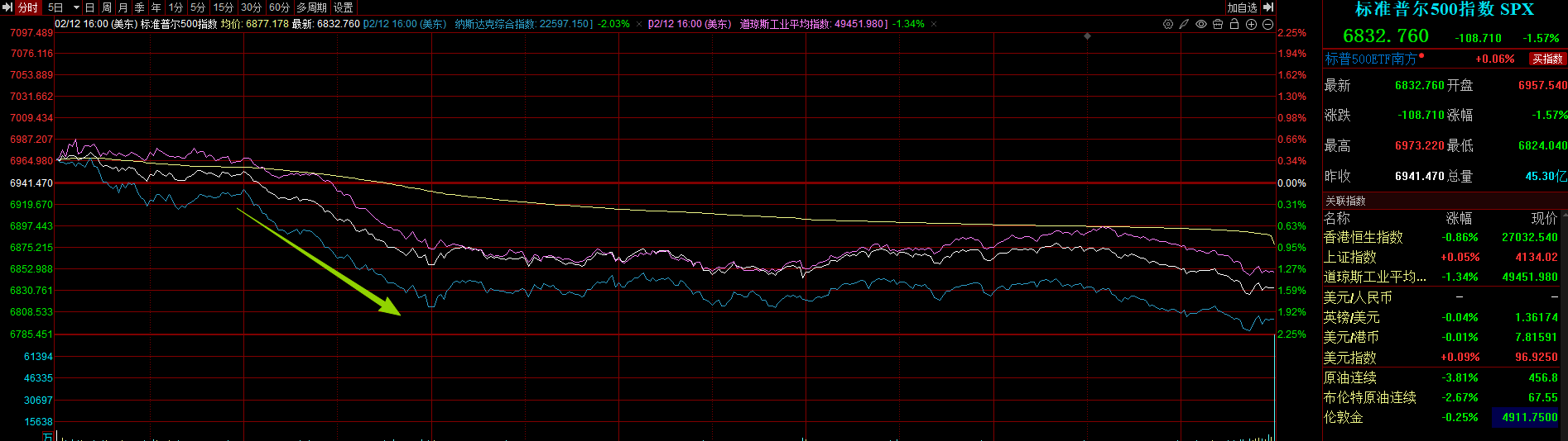 At the close, the S&P 500 index fell 1.57% to 6,832.76; the Dow Jones Industrial Average declined 1.34% to 49,451.98; the Nasdaq dropped 2.03% to 22,597.15.