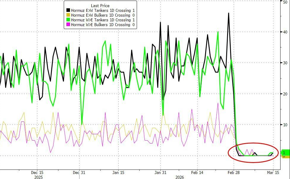 Theo NBC, sau khi hơn chục tà thương bị tấn công bằng drone, thực tế eo biển này đã đóng cửa đối với tàu dầu. Các chiến tranh còn lan rộng ra toàn bộ hạ tầng năng lượng Trung Đông: Mỹ và Israel đã oanh tạc trung tâm xuất khẩu dầu của Iran là đảo Kharg; Saudi Arabia, Dubai, Kuwait đã báo cáo nhiều vụ tấn công bằng drone; một cảng xuất khẩu dầu quan trọng của Oman đã sơ tán sau vụ tấn công tàu dầu; Iraq đã tạm ngừng hoạt động các trạm dầu; cảng Fujarah của UAE liên tiếp bị drone tấn công.