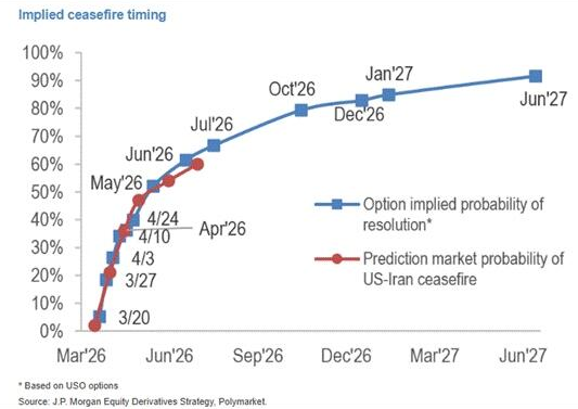 Các thị trường quyền chọn và dự đoán hiện tại cho thấy, khả năng đạt được thỏa thuận đình chiến trong vòng hai tháng chỉ khoảng 50%.