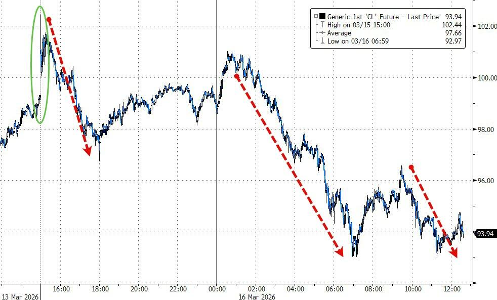 Qua đêm, hàng loạt tin tức tiêu đề về “Tiếp xúc Mỹ-Iran” và “Việc đi qua Eo biển Hormuz” đã liên tục bùng nổ, trực tiếp đẩy giá dầu WTI từ trên 102 USD xuống dưới 94 USD.