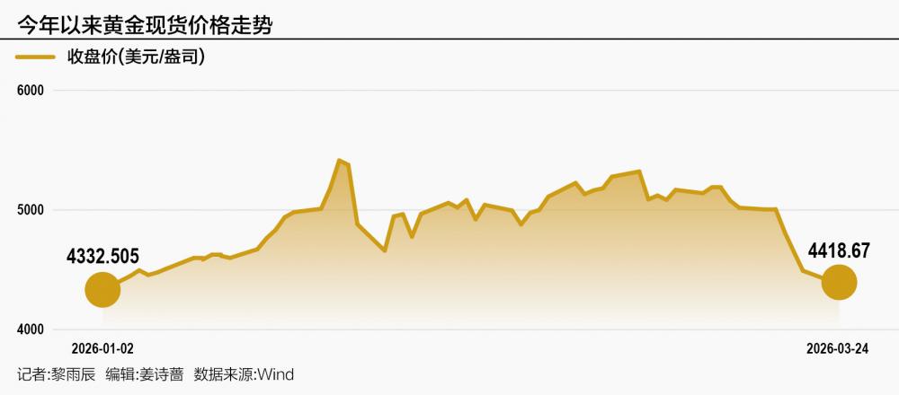 On March 23, spot gold, which had risen above $4,500, briefly fell below $4,100, erasing all its gains for the year. On the same day, the main Shanghai Gold futures contract dropped 8.62%. Just from March 16 to 20, spot gold plunged 10.52%, marking the largest weekly decline since 1983.