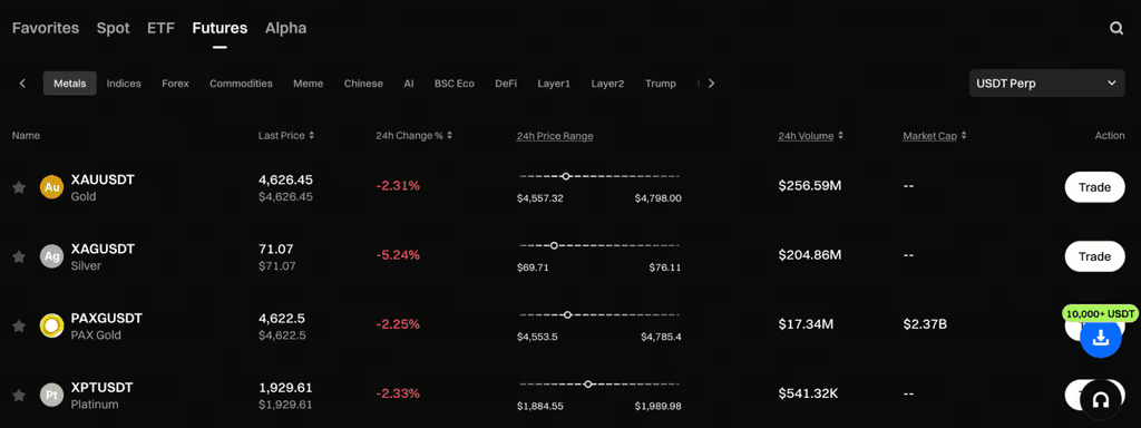 デジタルトレーディング・プラットフォームの発展により、貴金属市場への参加方法もより多様になっています。Gate 金属専用エリアでは、金と銀の無期限先物契約の取引を提供しており、投資家はより柔軟に市場の変動に参加できます。
