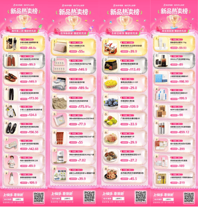 Meanwhile, to further improve product selection efficiency and accelerate new product distribution, the platform integrates best-selling categories and trend new products both inside and outside the app. It builds industry new product best-seller charts such as for apparel, fresh goods, beauty and cosmetics, and personal care, sets up a new product library, and provides clear and intuitive product selection references for business matching, efficiently broadening the sales channels for new products.