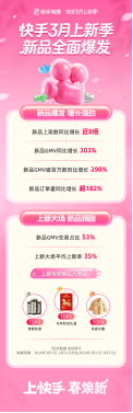 Spring Refresh Consumer Season comes to a close, and Kuaishou’s March New Arrivals season wraps up. Recently, Kuaishou released data showing that during the event period, the platform’s new product GMV grew 303% year over year; the number of new product GMV exceeding one million grew 290% year over year; and new orders volume increased by more than 182% year over year. Under multiple support new-product policies during the March New Arrivals season, Kuaishou’s new product “hot picks” are seeing a concentrated surge.