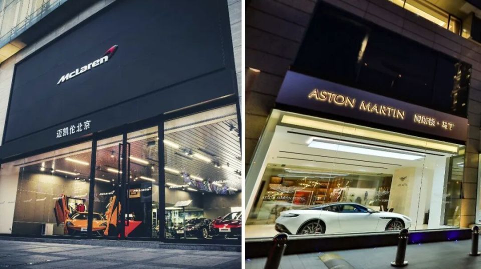 Jinbao Street is known as an area where famous cars gather. Maserati, Aston Martin, and Ferrari专营店 are set along the street. An old Beijinger mentioned that with imported luxury car sales shrinking, many famous car shops on the street stopped operating.