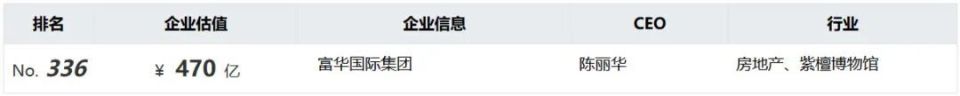 Data from Hurun China’s 500 list shows that Fuhua International is valued at about RMB 47 billion.