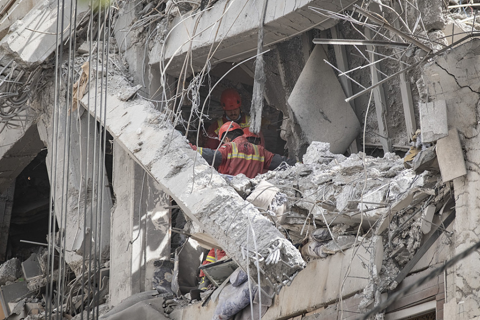 △ Local time on March 27: Firefighters work amid the rubble of a destroyed residential building in Tehran, Iran