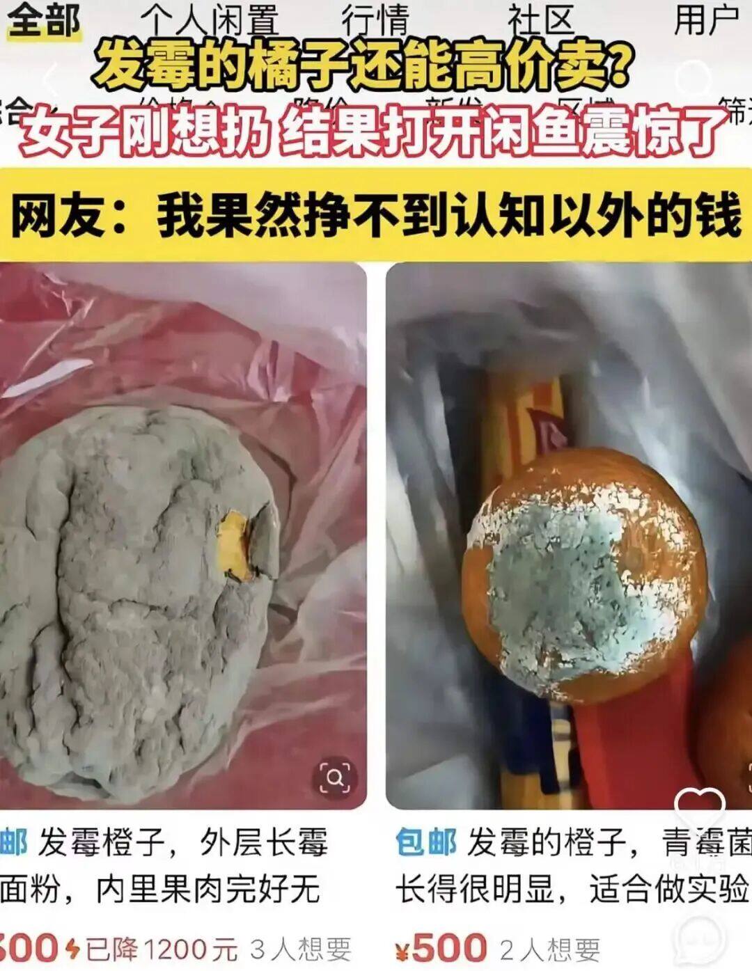 Someone sells moldy oranges on Xianyu, and students from biology and medical majors spot them at a glance, saying they want to extract the mold for research—then they pay a high price of several hundred to several thousand RMB for a buyback;