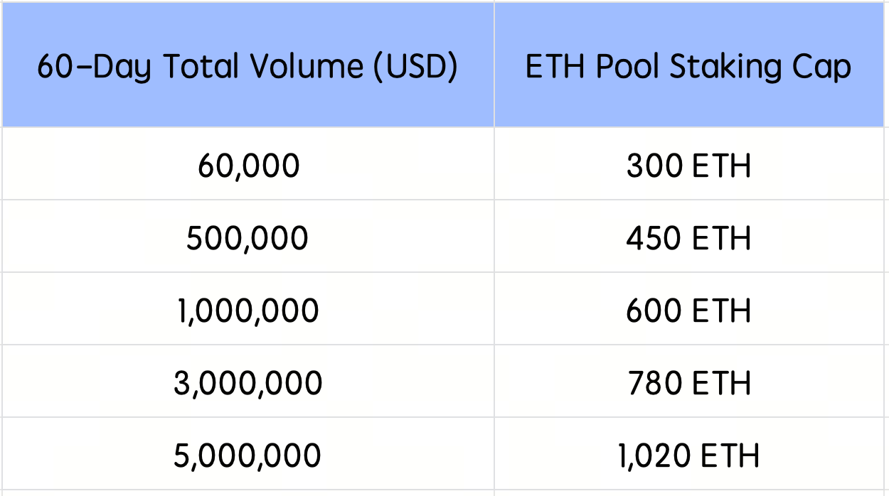 Seu limite de staking será determinado pelo seu volume total de negociação nos últimos 60 dias. Alcance um volume de negociação maior para desbloquear um limite de staking mais alto.