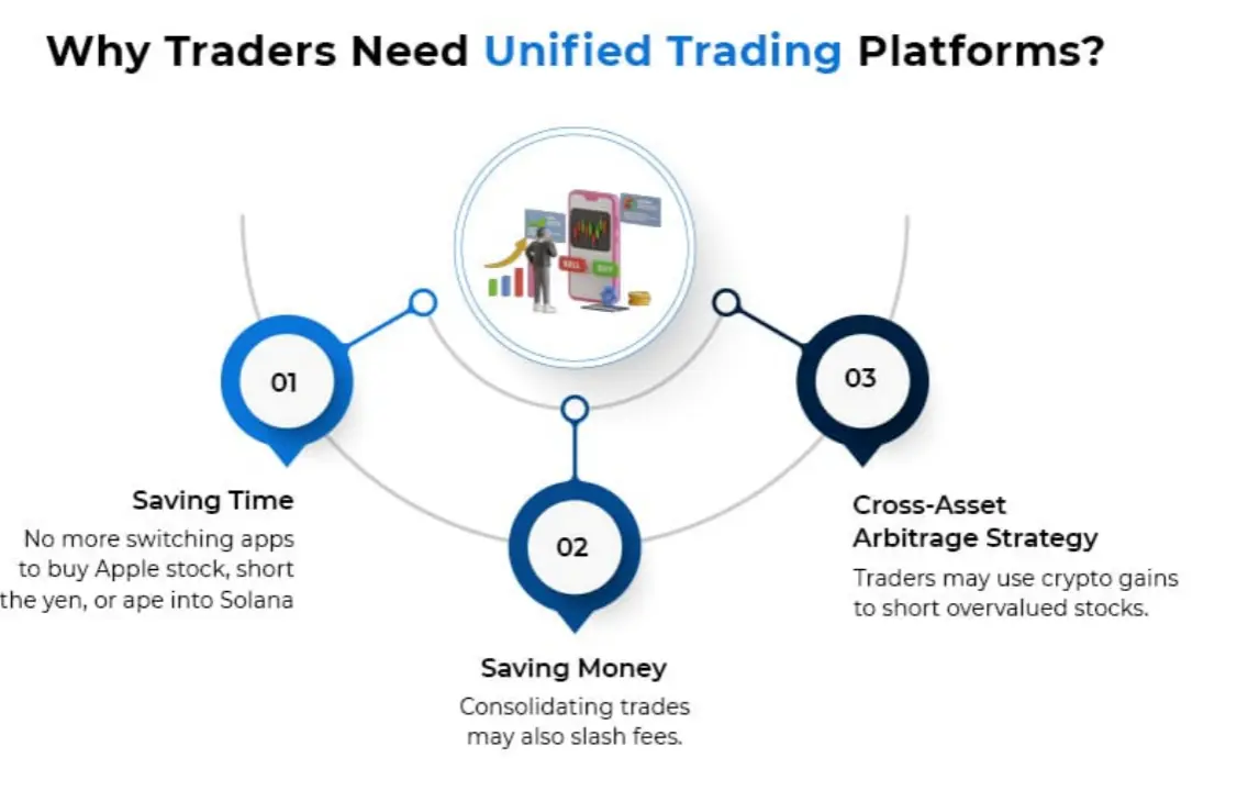 No passado, os mercados de capitais globais tinham uma divisão clara em termos de estrutura e participantes: as ações e os ETFs pertenciam ao sistema de corretoras, os ativos criptográficos eram suportados pelas bolsas, e o câmbio era principalmente operado por traders profissionais. Diferentes ativos dependiam de diferentes aplicações, fontes de liquidez e estruturas de análise, com interações limitadas entre si.