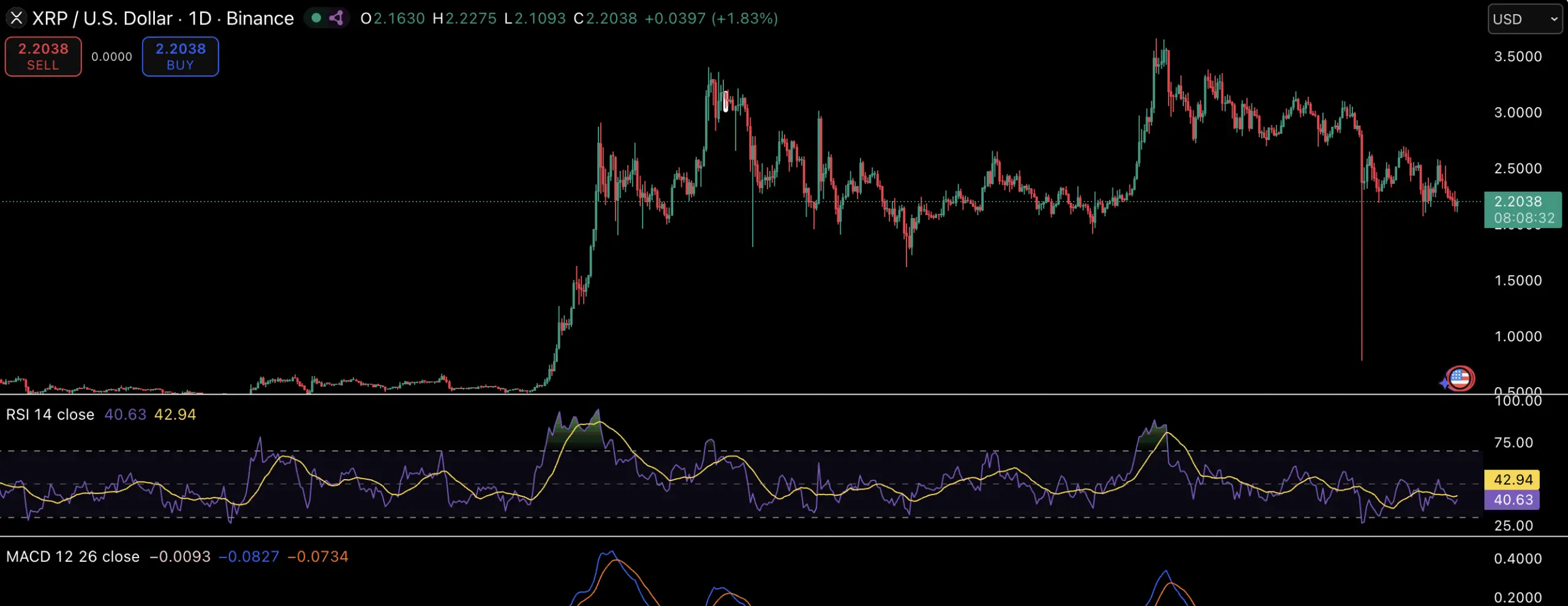 XRP caiu para cerca de $2,10, eliminando semanas de acumulação de preço.