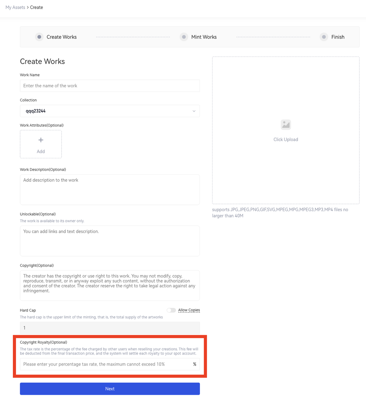 Создатели могут устанавливать роялти за работы или коллекции NFT в размере от 0 до 10%. Работа NFT, созданная на платформе Gate NFT, обычно имеет фиксированную налоговую ставку, которая устанавливается создателем и не может быть изменена после завершения работы.