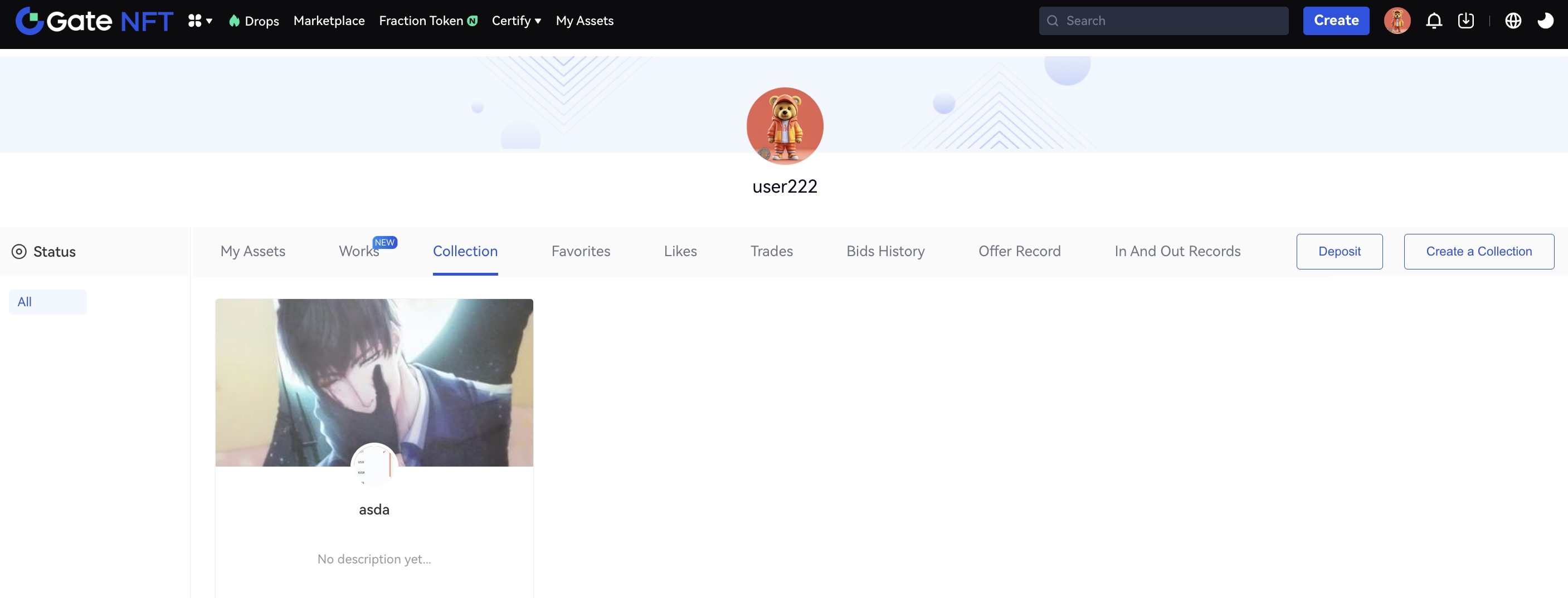 Шаг 2:На странице “Мои активы” нажмите “Управление коллекцией” и выберите коллекцию NFT, для которой вы хотите просмотреть истории о роялти.