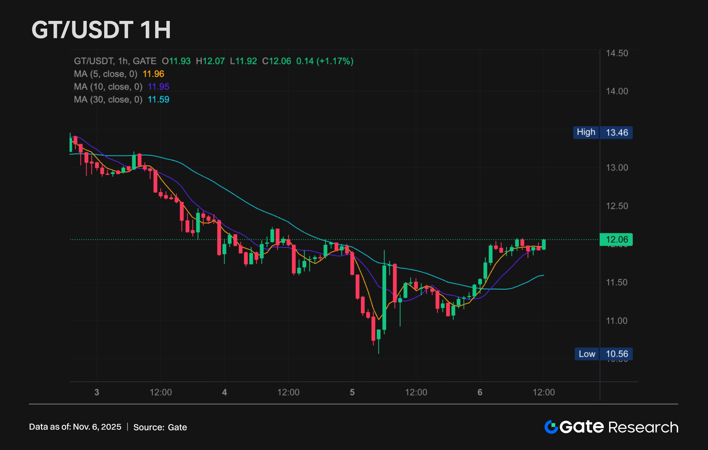 GT(+4.95% 丨 текущая цена 12.06 USDT)