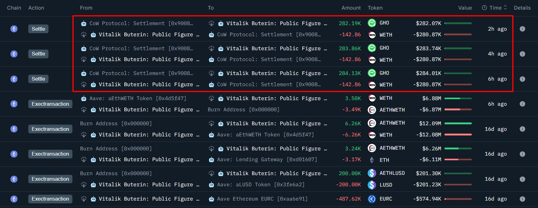 Глубокие новости TechFlow, 22 февраля, согласно мониторингу OnchainLens, Виталик Бутерин снова продал 428,57 ETH, получив взамен 850 178 GHO, и, скорее всего, продолжит продажи.