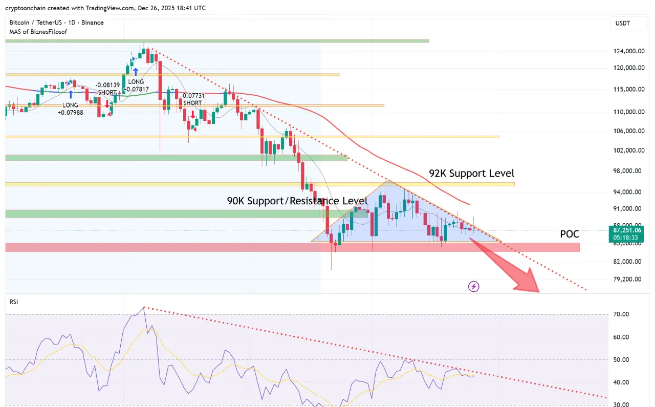 Bitcoin To Retest $85,000 As Bearish Technicals And On-Chain Weakness Align