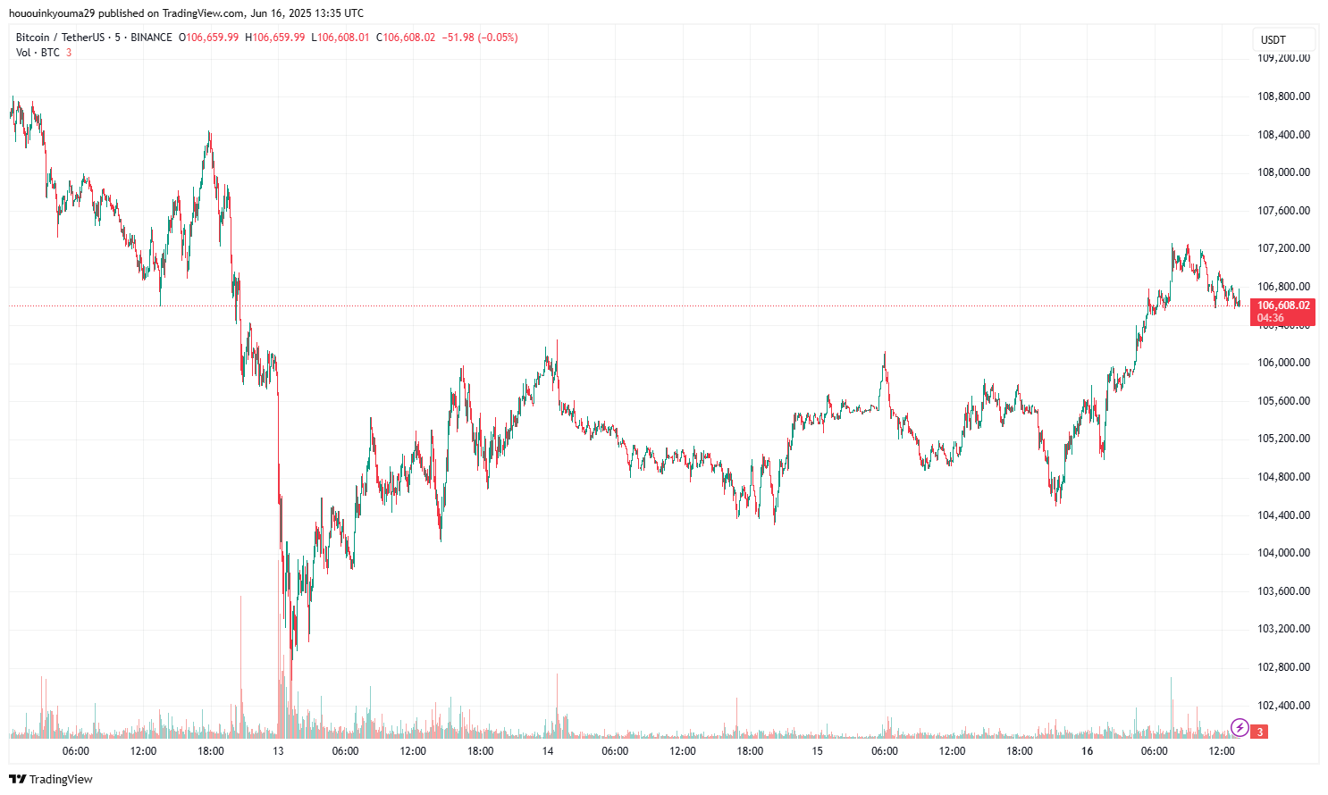Біткоїн зробив незначне відновлення протягом останнього дня, оскільки його ціна повернулася до $106,600.