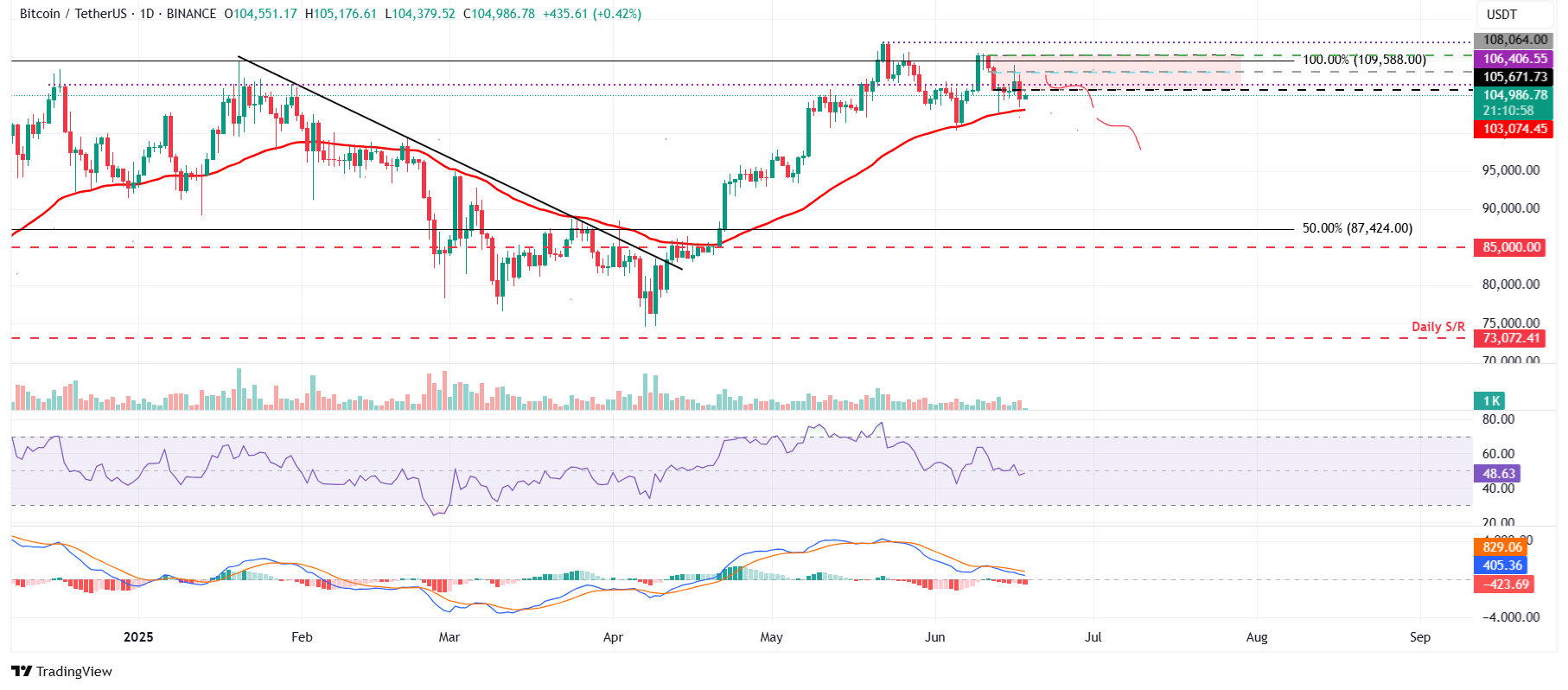 Аналітик FXStreet Маніш Чхетрі зазначив, що ціна Біткойна значно впала, з 110,274 доларів на відкритті 10 червня до 105671 доларів на закритті 11 червня, утворивши справедливу вартість (FVG) приблизно на рівні 108064 доларів. Ця ведмежа FVG вказує на ключову зону опору, що означає, що, як тільки Біткойн отримає ліквідність, він, ймовірно, продовжить корекцію.