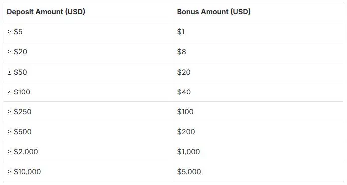 Бонус за перший депозит (FDB) допомагає трейдерам зміцнити свої початкові торгові позиції. Як тільки клієнт здійснює свій перший депозит, платформа автоматично зараховує бонусну суму протягом кількох хвилин. Цей додатковий баланс може бути використаний на різних ринках і торгових стратегіях з самого початку.