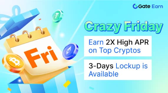 ·09 tháng 6- 12 tháng 6, Gate Crazy Friday: Kiếm APR cao gấp 2 lần trên các loại tiền điện tử hàng đầu với thời gian khóa 3 ngày