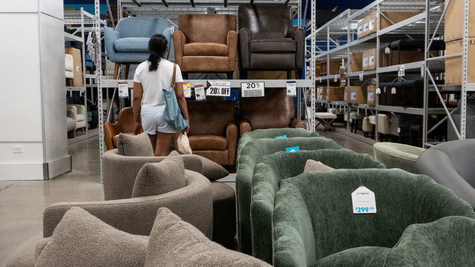 Một người mua hàng nhìn vào các chiếc ghế bán tại một cửa hàng ở Queens, New York, vào tháng Bảy. - Kylie Cooper/Reuters/FILE
