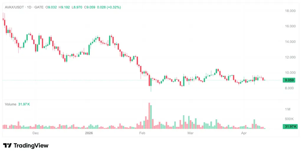 Trong bối cảnh thị trường tài sản mã hóa bước vào Quý 2 năm 2026, token AVAX của Avalanche đang ở một điểm giao thoa quan trọng giữa công nghệ và câu chuyện thị trường. Tính đến ngày 13 tháng 4 năm 2026, theo dữ liệu giá của Gate, giá AVAX khoảng 9.07 USD, biến động nhẹ trong ngày, nhưng trong vòng một năm qua, giá trị đã giảm hơn 55% so với đỉnh lịch sử. Các nhà tham gia thị trường đang tranh luận gay gắt quanh mốc 9 USD: một bên chú ý đến sự gia tăng thanh khoản tổ chức từ hợp đồng tương lai sắp ra mắt của Sở Giao dịch Hàng hóa Chicago (CME), bên còn lại cảnh giác trước hình thái kỹ thuật yếu do áp lực trung bình dài hạn. Bài viết sẽ bắt đầu từ các sự kiện khách quan, kết hợp dữ liệu on-chain và các ý kiến trái chiều để phân tích sâu về cấu trúc thị trường hiện tại của AVAX và logic phát triển trong tương lai.