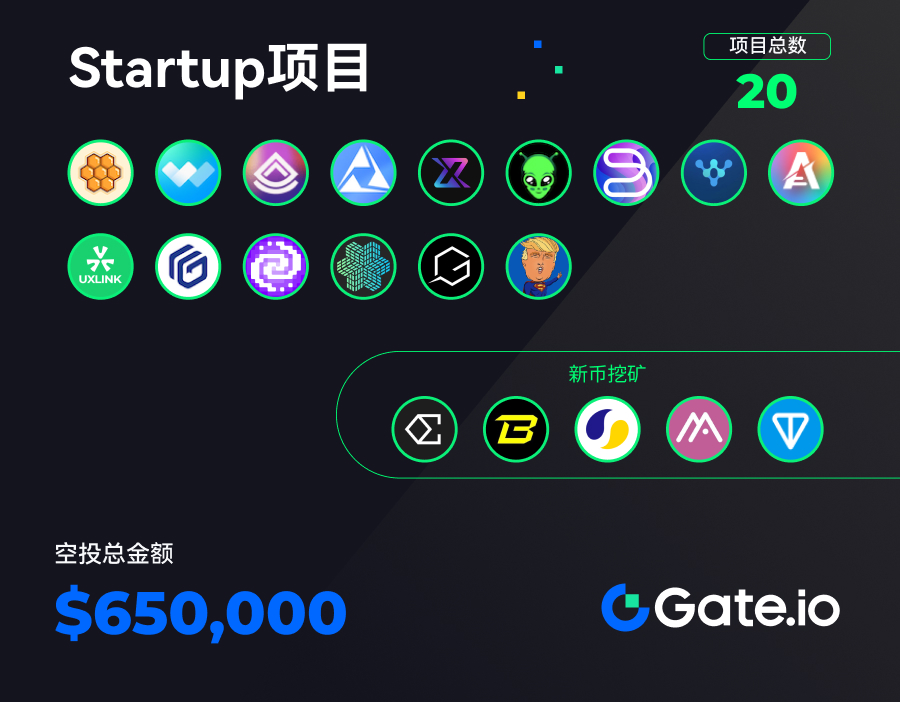 本周期Gate上线了15个新项目和20个Startup项目,总空投价值为65万美元。