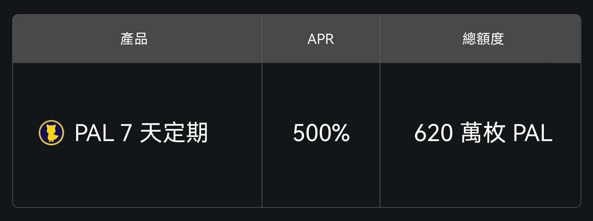 Gate 余币宝现已上线 PAL 7 天定期理财,年化收益 500%,总额度 620 万枚 PAL,限量发售,先到先得。