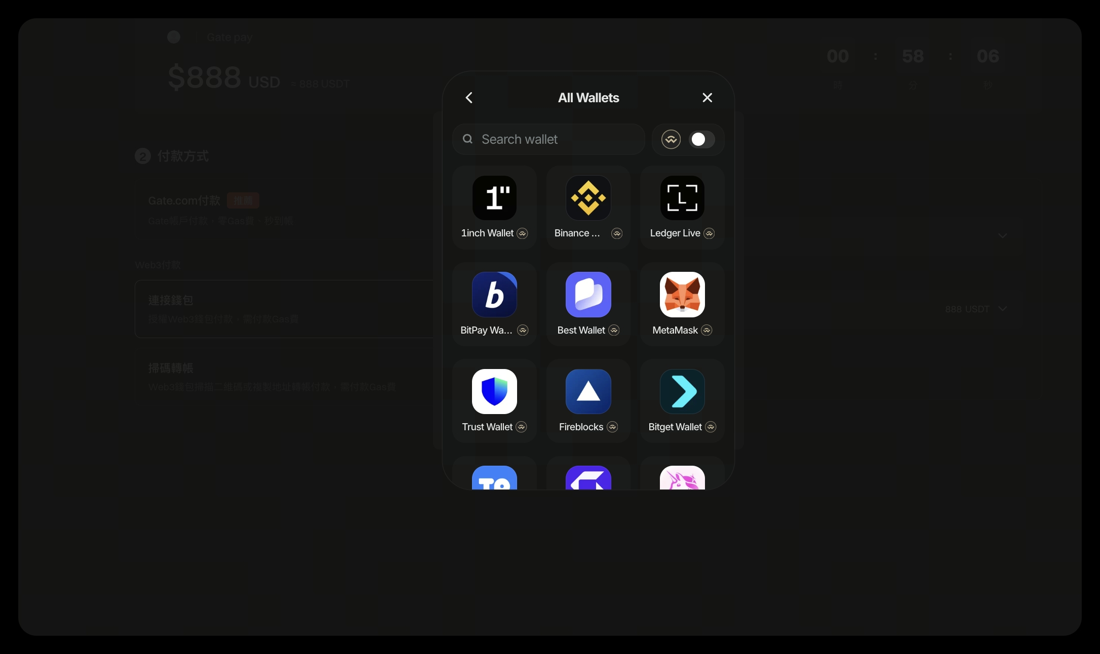 在原生支援超過 400 個 EVM 生態錢包的基礎上,Gate Pay 進一步擴展多鏈生態相容能力,本輪新增支援 Phantom(Solana)、TronLink(TRON)、Bitget Wallet、Coinbase Wallet 等主流錢包。