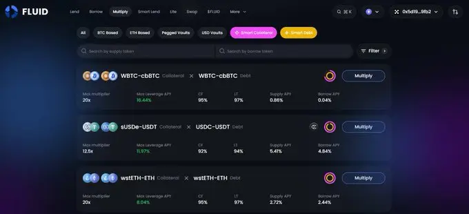 所以 Fluid 非常利於 USDC/USDT 或者 ETH/wstETH 這種穩定掛鉤資產 LP 的循環貸,也會吸引穩定幣理財巨鯨和鏈上激進的交易者。