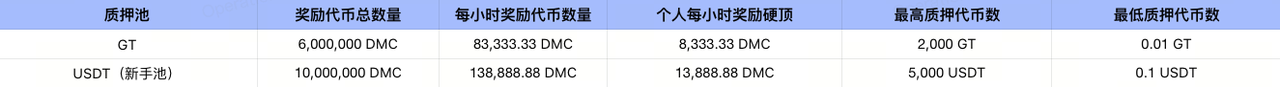 如何参与:登录Gate账号,完成身份认证 → 进入Launchpool → 持有不低于 0.01 GT/ 0.1 USDT/ 1 DMC→ 点击“质押”。