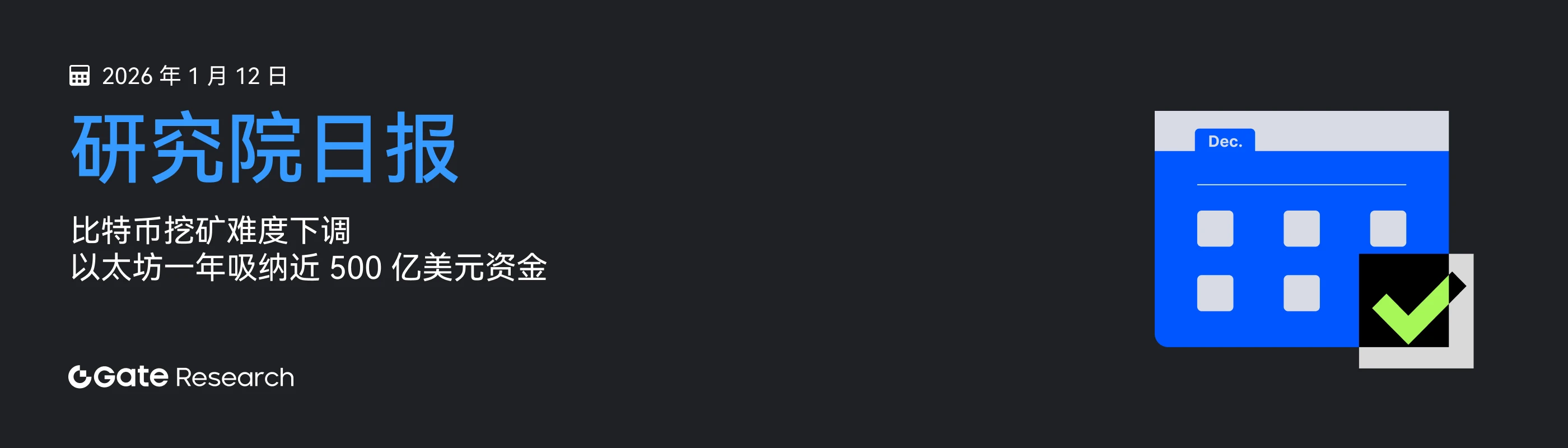 探索本日详情 → Gate 研究院:比特币挖矿难度下调|以太坊一年吸纳近 500 亿美元资金