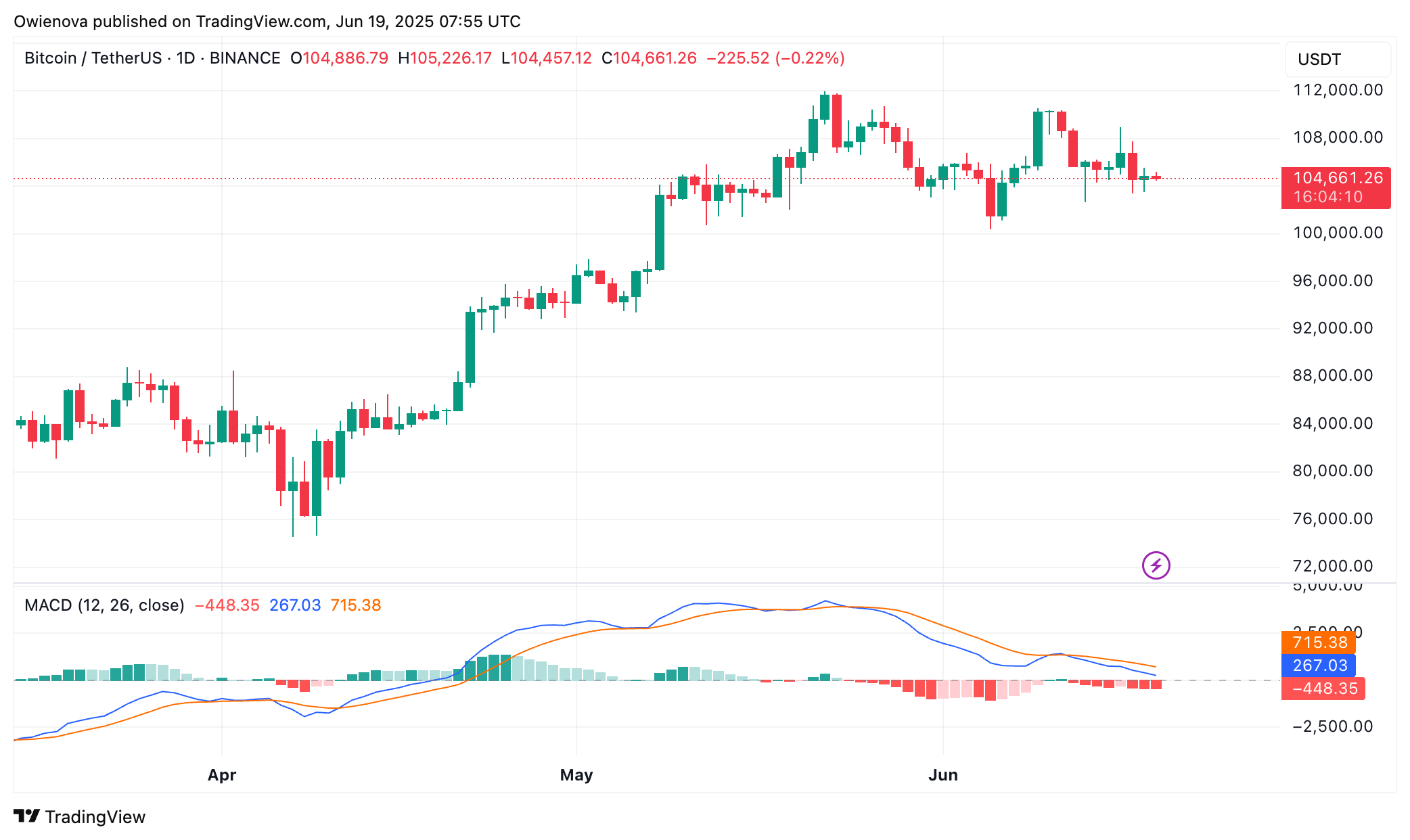 截至撰写时,比特币的价格为104,752美元,过去一天下降了1%,过去一周下降了2.90%。市场情绪依然悲观,过去24小时的交易量下降超过9%。
